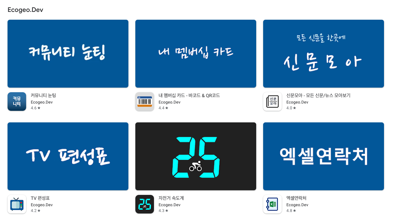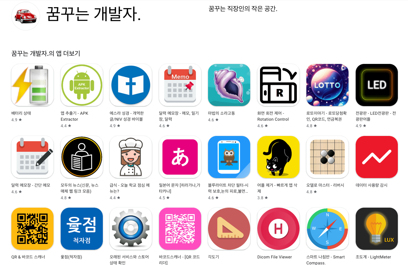 개발자명을 클릭하면, 그 개발자가 스토어에 출시한 앱 목록이 나오게 됩니다.