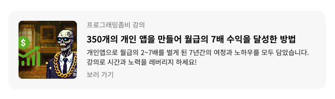 프로그래밍 좀비님은 실제 운영하는 서비스와 이름을 비공개 한 채로 활동하고 있습니다.