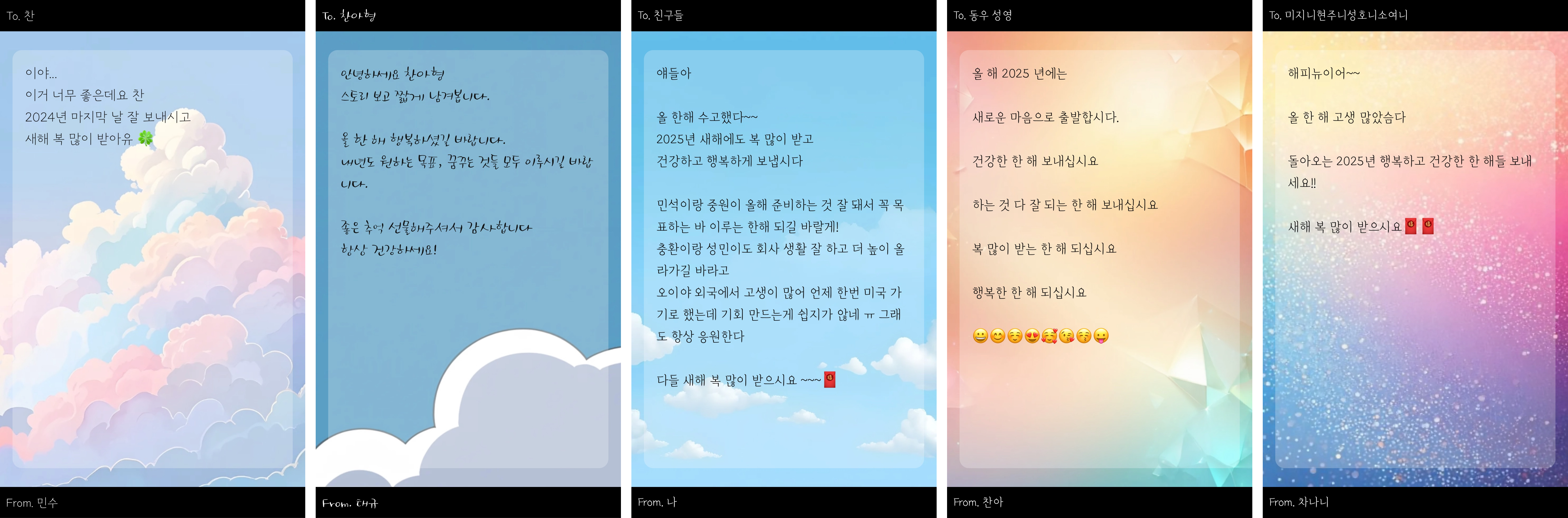 2명은 저에게 편지를 보냈고 1명은 지인에게 새해 편지를 보냈었다고 오늘 제게 알려주었습니다.