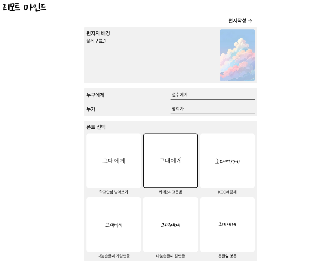 1. 메시지를 담을 편지지 배경과 글꼴(폰트)을 선택합니다.